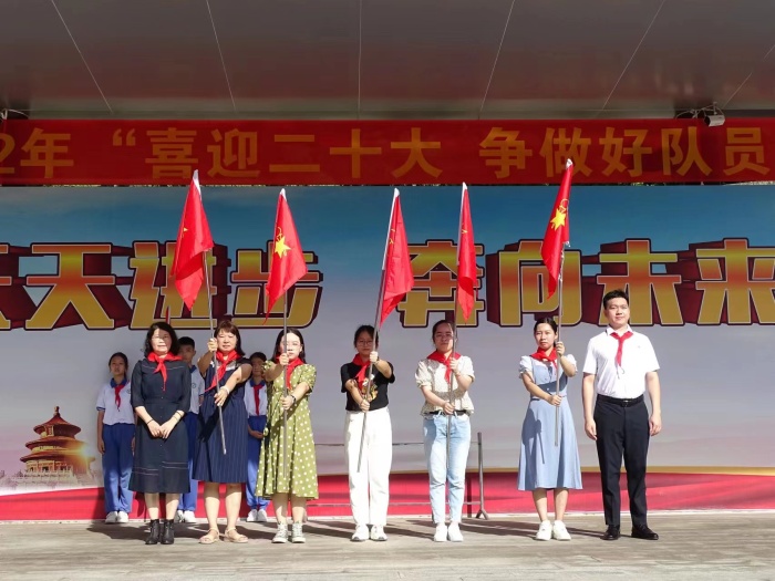 為貫徹落實(shí)習(xí)近平總書記關(guān)于少年兒童和少先隊(duì)工作的重要指示精神,進(jìn)一步規(guī)范少先隊(duì)入隊(duì)工作,增強(qiáng)新隊(duì)員的組織歸屬感,在學(xué)校黨支部的引領(lǐng)下,2022年5月31日,開發(fā)區(qū)第二小學(xué)開展了“喜迎二十大 爭(zhēng)做好少年”一年級(jí)新隊(duì)員入隊(duì)儀式。張家邊社區(qū)“兩委”、團(tuán)委書記、少工委總輔導(dǎo)員陳俊杰,張家邊社區(qū)團(tuán)委副書記張存?zhèn)?、陳敏靜,張家邊社區(qū)團(tuán)委兼職副書記陳綺曈,張家邊社區(qū)中心小區(qū)第三團(tuán)支部書記吳穎琪,開發(fā)區(qū)第二小學(xué)少工委主任周瑞珍校長(zhǎng)、副主任馮麗芬副校長(zhǎng)、委員鄭康樂(lè)副校長(zhǎng)、黃桂芬副主任等人出席了本次的活動(dòng)。