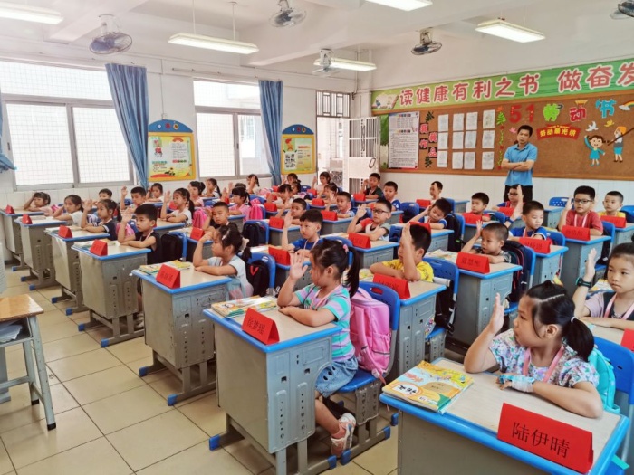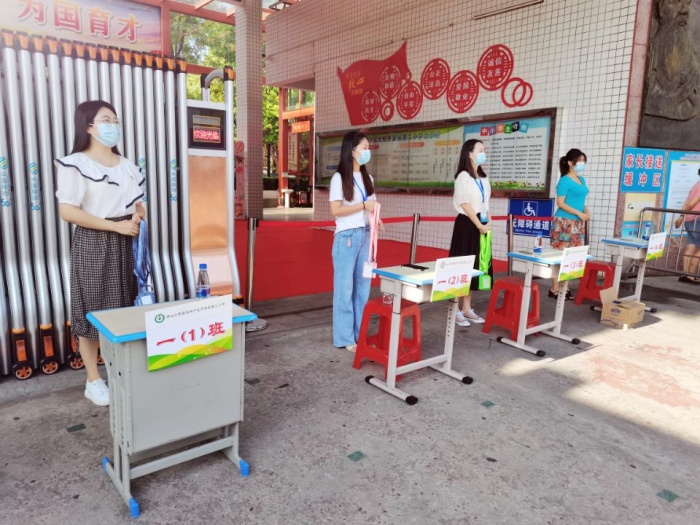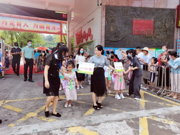 8月28日早上7:30分,學(xué)校行政和老師們?cè)缭缭陂T(mén)口迎接一年級(jí)的小同學(xué),細(xì)心地為每位新生帶上班級(jí)專屬顏色的班牌卡套,學(xué)生通過(guò)體溫測(cè)量區(qū)后,由老師帶著孩子們找到自己所在的班級(jí)。就這樣,孩子們懷著激動(dòng)、好奇的心情進(jìn)入校園、來(lái)到教室,開(kāi)啟了自己的小學(xué)學(xué)習(xí)生活之旅。
