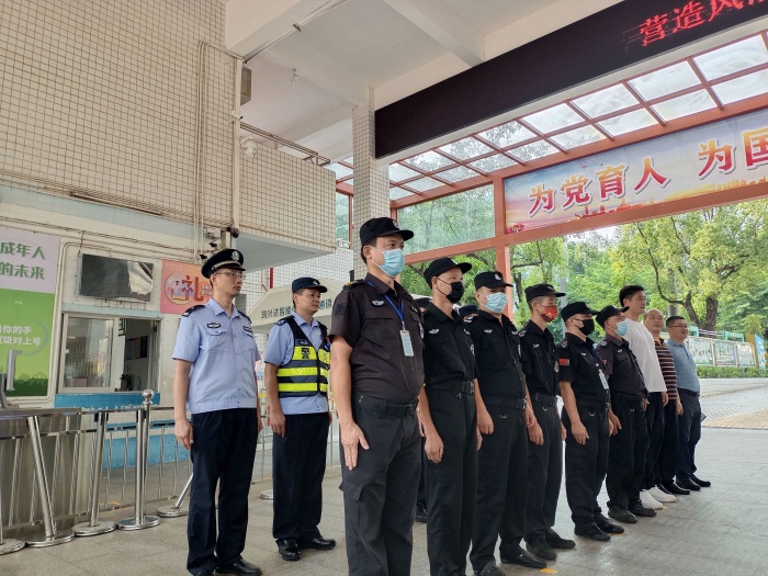參加本次活動的主要人員有:張家邊派出所、學校保安處、學校護校隊成員?;顒娱_始,鄭康樂副校長首先代表學校對蔡成文警官等一行人表示了歡迎與感謝。蔡成文警官一行與學校安全負責人進行了深入的校園安全工作交流,并提醒相關注意事項,蔡成文警官表示會全力支持校園安全相關工作。