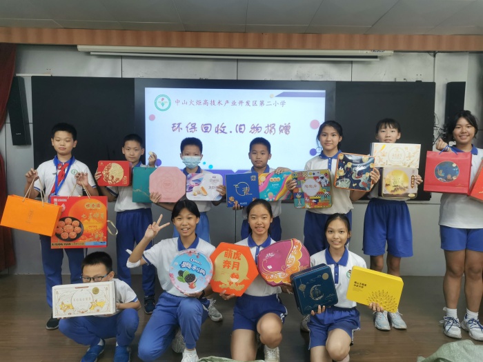 活動結(jié)束后,在少先隊大隊輔導(dǎo)員陳一蕾老師的組織下,少先隊隊干們把收集到的月餅盒、廢舊電池、電子廢品整理分裝包扎好,等待回收人員的回收。