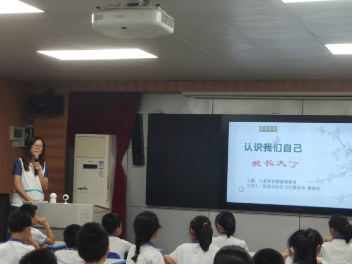 張家邊社區(qū)衛(wèi)生服務(wù)站楊曉珍護士利用短視頻《丁丁豆豆的故事》,圍繞青春期的生理特征、心理變化、如何自我保護、如何養(yǎng)成良好的學(xué)習(xí)生活習(xí)慣等方面為學(xué)生進行了詳細、生動的講解。講座結(jié)束后,孩子們紛紛舉手提出了自己的疑惑,如“男生沒有變聲期怎么辦”“身高跟遺傳有關(guān)嗎”……楊護士循循善誘,有的放矢,幫助孩子們破解青春期帶來的煩惱,教導(dǎo)他們學(xué)會自我保護,拒絕不合理的要求,及時尋求幫助,指導(dǎo)學(xué)生了解、正視自己的身體變化,以最佳的精神狀態(tài)融入學(xué)習(xí)與生活當中。
