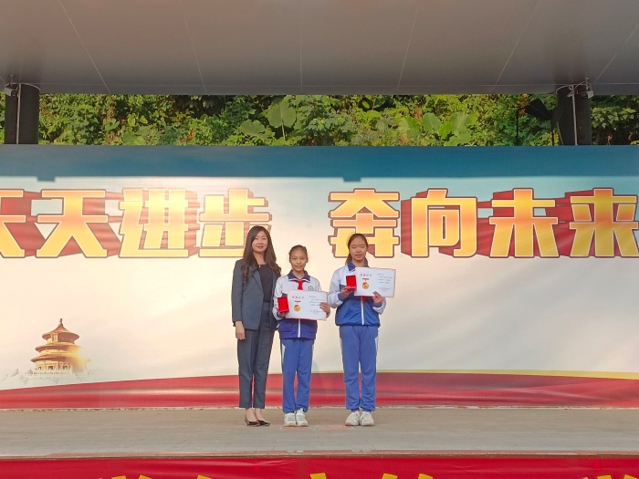 在過去的2021-2022學年度“紅領巾獎章”評比中,學校共有3位隊員獲得個人四星章,24位隊員獲得個人三星章?;顒右潦?,大隊輔導員陳一蕾老師宣讀了獲獎名單。