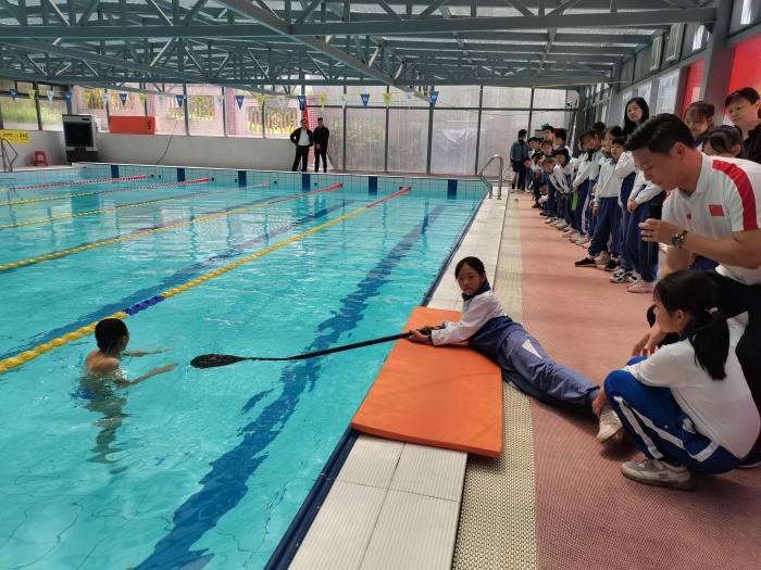 講座結(jié)束后,四4班的同學(xué)和老師來到恒溫游泳館,在教練員的現(xiàn)場講解和施救示范下,初步掌握了自救方法和施救方法。自救方法包括抓住周圍漂浮物,放松全身,讓身體漂浮在水面上,將頭部浮出水面,用腳踢水等。施救方法包括大聲呼救,找附近的大人求助;可以嘗試用木棍或繩子將溺水者拉至岸邊,但注意要保證自身的安全,可以趴在地上增加摩擦力,或者用障礙物做防護(hù)屏障,防止被反拖下水;為了爭取救援時間,還可以向溺水者拋擲木塊、塑料瓶等能漂浮于水面的物品,幫助他們保持在水面上呼吸;當(dāng)落水者離岸較遠(yuǎn)時應(yīng)尋找救生圈、救生繩、木板等拋向落水者等。