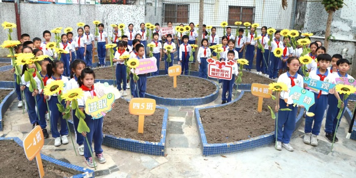 同時向?qū)W生講述了選擇種植向日葵花的意義:向日葵姿態(tài)挺拔,氣勢高昂,永遠(yuǎn)保持著一種樂觀、進(jìn)取的姿態(tài);它具有向陽性,每天不停地圍著太陽進(jìn)行轉(zhuǎn)動,對太陽始終忠誠,這是一種態(tài)度,一種精神,是一種信仰;無論風(fēng)吹雨打,無論嚴(yán)寒酷熱,它始終不停步、不放棄,一直全力生長。它用最堅韌的精神,抒寫最偉大的夢想;用最努力的進(jìn)取,踐行最純粹的忠誠,用全身心的奉獻(xiàn),無私回饋社會。向日葵的這種精神品質(zhì),值得二小的每一位少年用心去體會,用行動去踐行。