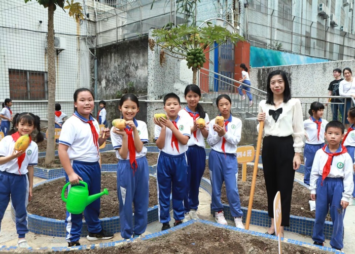 種植實踐活動在馮麗芬校長的致辭中拉開序幕,馮校長巧妙地結(jié)合“春耕、夏耘、秋收、冬藏”四個時令詞語,將大自然的四季更替與學(xué)生的成長有機(jī)結(jié)合,號召學(xué)生在“綠趣園”勞動基地里尋找大自然的奧秘。