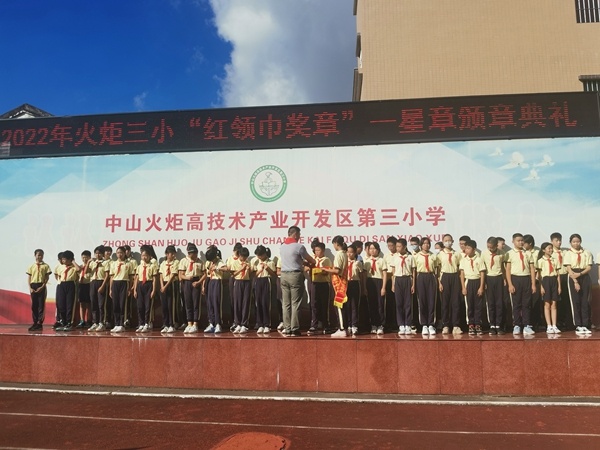 為幫助未成年人扣好人生“第一??圩印?,切實(shí)增進(jìn)少先隊員的榮譽(yù)感,構(gòu)建“紅領(lǐng)巾獎?wù)隆痹u價激勵體系,塑造少先隊員正確的價值觀。火炬開發(fā)區(qū)第三小學(xué)少工委結(jié)合學(xué)校實(shí)際情況,制定了“紅領(lǐng)巾獎?wù)隆睜幷路桨?,并開展系列紅領(lǐng)巾爭章活動。2022年6月27日上午,三小舉行了“紅領(lǐng)巾獎?wù)隆币恍钦骂C章儀式。