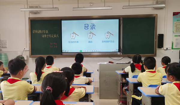 活動伊始,老師們用通俗易懂的語言,生動形象地向孩子們講述了愛牙日的由來,為孩子們講解了為什么會出現(xiàn)齲齒、怎么保護牙齒、如何科學(xué)刷牙以及換牙等口腔問題,并用視頻演示的方式教孩子們正確的刷牙方式,激發(fā)了孩子們學(xué)習(xí)口腔知識的熱情。活動過程中,孩子們踴躍參與其中,表達(dá)了自己對愛牙護牙行為的認(rèn)識與見解,分享了自己愛牙護牙的方法和經(jīng)驗。最后,老師們鼓勵孩子們將口腔健康知識帶回家同家長一起分享,引導(dǎo)帶動形成愛牙護齒的濃厚家庭氛圍。