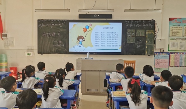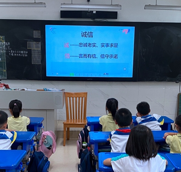 活動中,輔導(dǎo)員們通過游戲互動,以充滿樂趣的“信”字猜謎游戲,向隊員們拋出了活動的“誠信”主題,引起了隊員們對于“誠信”問題的思考與重視。從道德、法律和政治等層面對誠信有了更深入認(rèn)識,也讓隊員們進一步樹立起誠信的意識和品行。輔導(dǎo)員們精心的設(shè)計,除了上述猜字游戲,還通過講誠信故事、名人名言、誠信守則、聯(lián)系生活實際等形式,幫助隊員理解誠信的深刻內(nèi)涵和重要意義;引導(dǎo)隊員傳承中華民族尚廉崇潔誠信的優(yōu)良傳統(tǒng),將誠信作為基本道德準(zhǔn)則,養(yǎng)成誠信的良好習(xí)慣,從小事做起,自覺做誠實守信、敢于擔(dān)當(dāng)?shù)暮蒙倌辍?/p>