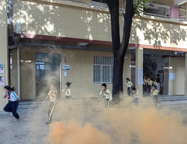 上午8:50,隨著“警報(bào)聲”響起,應(yīng)急疏散演練活動(dòng)正式開始。各崗位教師立即按事前的安排,到達(dá)自己負(fù)責(zé)的區(qū)域做好準(zhǔn)備。各班班主任迅速按照疏散線路帶領(lǐng)學(xué)生用濕毛巾或紙巾捂住口鼻,彎腰俯身,快速、有序地撤離到安全區(qū)域。