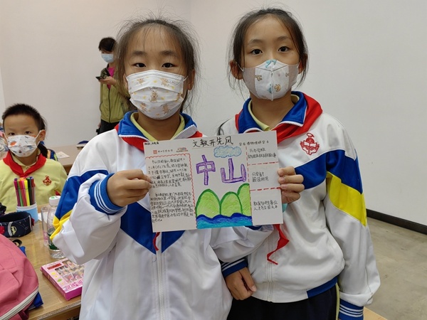 隊(duì)員們認(rèn)真聆聽并仔細(xì)閱讀文史資料、圖片資料以及實(shí)物展品,邊看邊討論,了解中山文教事業(yè)的發(fā)展歷程,體會(huì)中山教育文化歷史的深厚悠久。最后,隊(duì)員們在“學(xué)在博物館”研學(xué)卡中,通過書寫、繪畫表達(dá)自己對于教育的心得感悟。