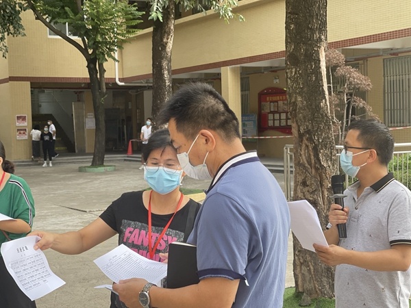 劉光旗校長初次上報教育主管部門,信息聯(lián)絡組通過校園廣播, 提醒全體師生立即回到教室、辦公室,減少人員交叉感染的風險, 并佩戴好口罩,班主任老師回到班級組織學生并安撫學生情緒。