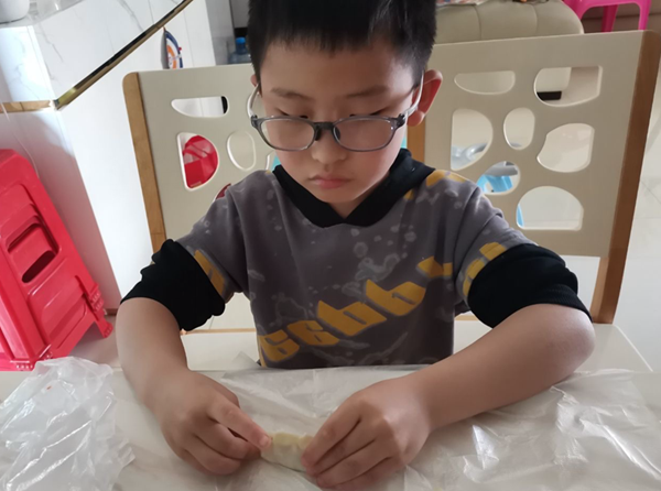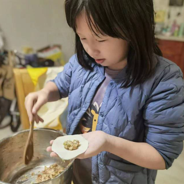 為了讓隊員理解“冬至大如年”的內(nèi)涵,感受冬至節(jié)的團圓意,三小讓隊員與家人一起學做包餃子。根據(jù)不同年齡階段的特點,對活動提出了不同的要求。低中段孩子在父母的幫助下,學會了包餃子的技能;高段孩子能夠在家長的指導下完成和餡、包餃子、煮餃子、調(diào)味的任務。孩子們在聽家長介紹的同時也學的有模有樣,向大家展示了各種形態(tài)的餃子,看著自己親手制作的一盤盤別出心裁的餃子,心里樂開了花。