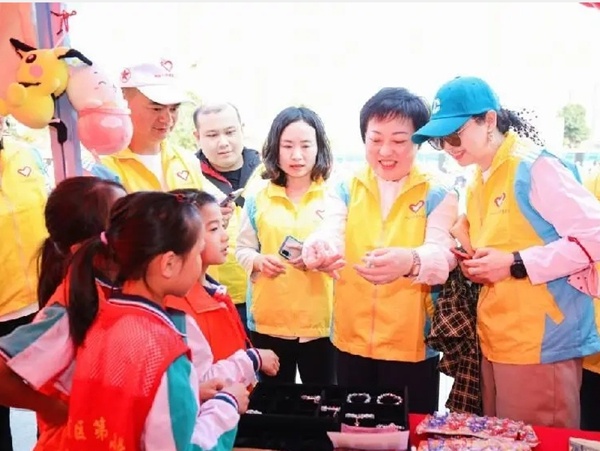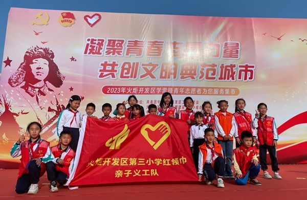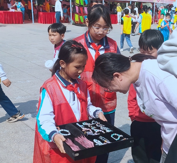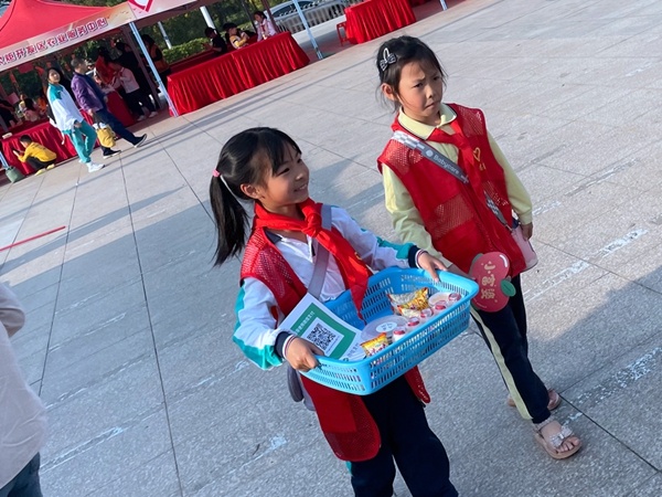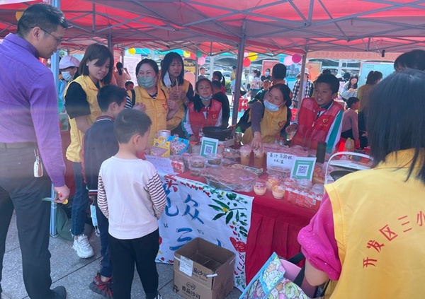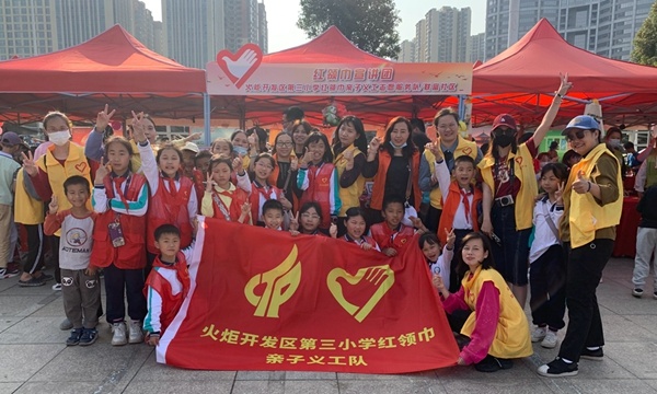 當(dāng)天下午,太陽(yáng)城廣場(chǎng)舉行的志愿者服務(wù)集市活動(dòng)像當(dāng)空的驕陽(yáng),如火如荼、熱鬧非凡?;鹁嫒∮H子義工隊(duì)的一覽眾“三”小義賣攤位和紅領(lǐng)巾宣講攤位上,站滿了大大小小的志愿者,紅紅的桌布上放著琳瑯滿目的活動(dòng)物品。