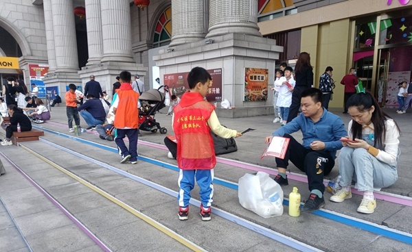 參加本次活動(dòng)的志愿者來自二(2)班、三(4)班、四(2)班和四(4)班,超過20對(duì)親子義工家庭。活動(dòng)內(nèi)容包括垃圾分類宣傳,學(xué)習(xí)強(qiáng)國(guó)APP的使用推廣,爭(zhēng)創(chuàng)全國(guó)文明典范城市宣傳,愛心義賣等,既鍛煉學(xué)生積極交往、與人合作的能力,同時(shí)培養(yǎng)孩子們奉獻(xiàn)愛心、助人為樂的志愿服務(wù)意識(shí)。