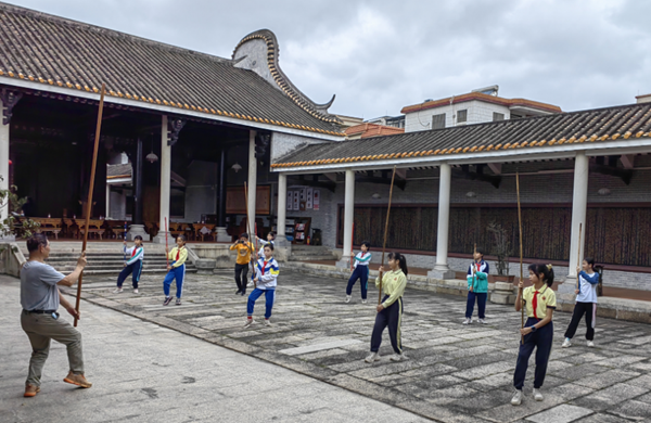 火炬三小于2022年11月成功申請(qǐng)為“濠頭鄭家棍”非物質(zhì)文化遺產(chǎn)傳承基地。三小將充分挖掘“濠頭鄭家棍”的健身和育人功能,邀請(qǐng)“濠頭鄭家棍”非遺文化傳承人鄭洪昆等為校外輔導(dǎo)員,以濠頭文化大院為校外實(shí)踐陣地,定期開設(shè)非遺文化社團(tuán),推進(jìn)“濠頭鄭家棍”非物質(zhì)文化遺產(chǎn)真正走進(jìn)校園,在提升學(xué)生身體品質(zhì)、文化內(nèi)涵,豐富學(xué)生校園生活的同時(shí),增強(qiáng)學(xué)生對(duì)本土非遺文化的認(rèn)同感與民族自豪感。