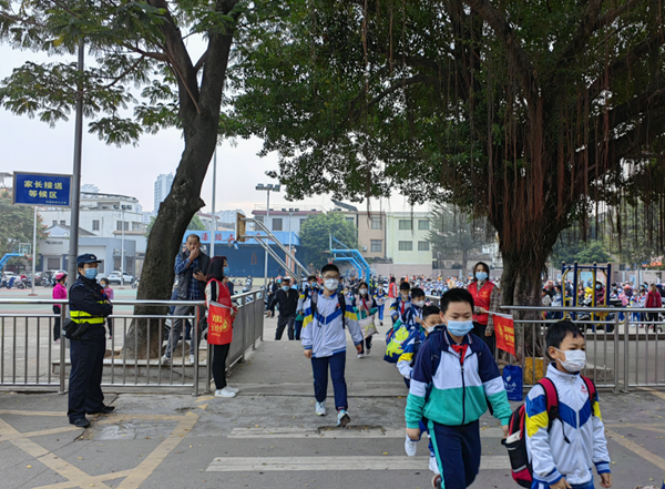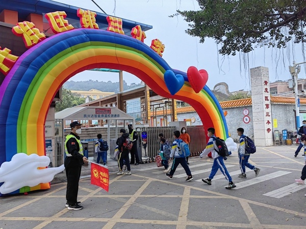 一大早,三小的老師們就守候在校門(mén)口,迎接學(xué)子們的歸來(lái)。社區(qū)民警和身穿紅色馬甲家長(zhǎng)志愿者們守護(hù)學(xué)生入校安全,入校秩序規(guī)范有序。