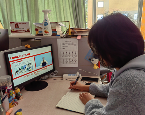 本次活動(dòng)包括專家解讀黨的二十大精神:堅(jiān)定不移推進(jìn)中國(guó)工現(xiàn)代化;二十大代表教師代表結(jié)合教育工作實(shí)際談學(xué)習(xí)二十大報(bào)告的感想、體會(huì);讓歷史和現(xiàn)實(shí)告訴未來(lái)——學(xué)習(xí)百年黨史,堅(jiān)定歷史自信等三個(gè)方面內(nèi)容。從多個(gè)角度宣傳解讀黨的二十大報(bào)告,引導(dǎo)教師深入學(xué)習(xí)領(lǐng)會(huì)黨的二十大精神,深刻領(lǐng)悟黨的二十大的理論含量、實(shí)踐力量、精神能量,全面落實(shí)立德樹人根本任務(wù),永遠(yuǎn)跟黨走、勵(lì)志擔(dān)使命,做黨和人民滿意的好老師和大先生。教師們認(rèn)聆聽,做好筆記,撰寫學(xué)習(xí)心得,使活動(dòng)內(nèi)容入腦入心?;顒?dòng)結(jié)束后,他們紛紛表示,本次活動(dòng)內(nèi)容豐富、見解精辟、緊貼實(shí)際,既有理論高度又生動(dòng)鮮活“接地氣”,切實(shí)幫助大家凝神聚氣、解疑釋惑,促進(jìn)理論水平進(jìn)一步提升,具有很強(qiáng)的指導(dǎo)性、針對(duì)性和啟發(fā)性。