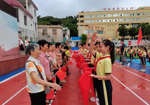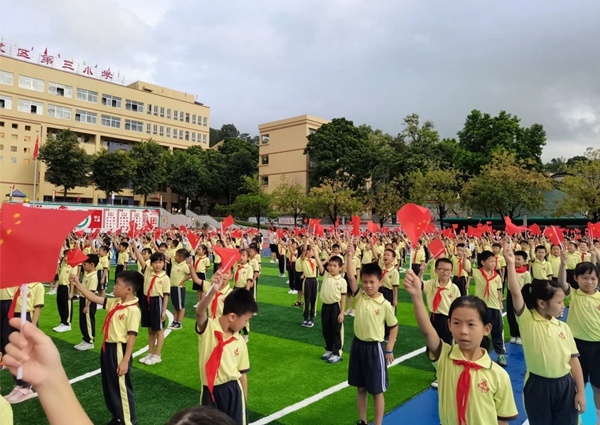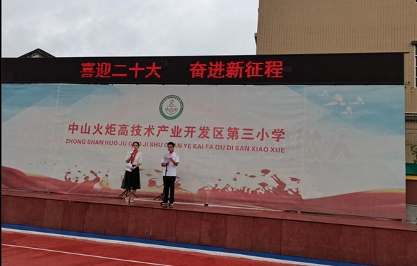 百年艱辛,鑄就一個(gè)民主、全新、團(tuán)結(jié)的中國(guó)。2022年,喜迎中華人民共和國(guó)成立73周年到來(lái)之際,火炬開(kāi)發(fā)區(qū)第三小學(xué)為豐富校園文化生活,展示學(xué)生風(fēng)采,增強(qiáng)師生的愛(ài)國(guó)情懷,于9月30日上午在學(xué)校大操場(chǎng)開(kāi)展了“喜迎二十大,奮進(jìn)新征程”慶祝國(guó)慶節(jié)愛(ài)國(guó)教育主題活動(dòng)。