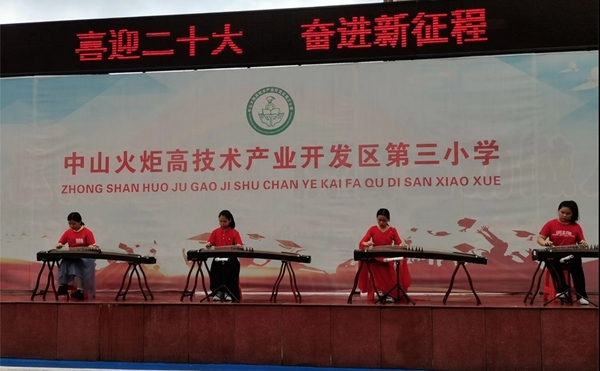 生在紅旗下,長(zhǎng)在春風(fēng)里。少先隊(duì)員國(guó)旗下的快板表演《中國(guó)人》和古箏表演《大中國(guó)》,詮釋了火炬三小莘莘學(xué)子對(duì)黨和祖國(guó)的無(wú)盡深情。