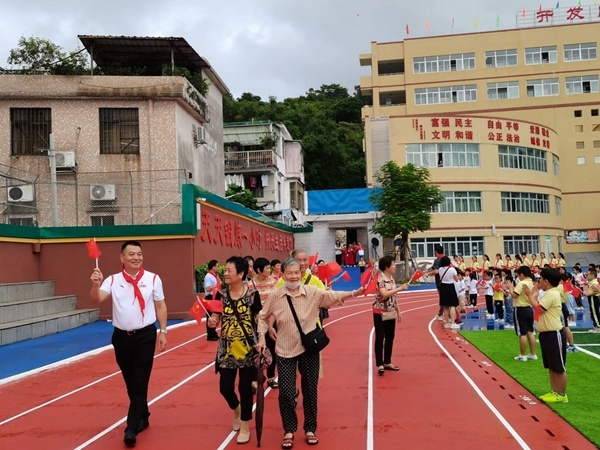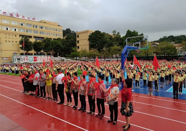 一朝沐杏雨,一生念師恩。在慶祝中華人民共和國(guó)成立73周年之際,火炬三小迎來(lái)了十幾位退休老教師的來(lái)臨,他們?cè)谶@里培育了一代又一代的社會(huì)主義接班人,為祖國(guó)各個(gè)行業(yè)默默地培養(yǎng)人才。當(dāng)少先隊(duì)員們將鮮紅的紅領(lǐng)巾再次佩戴在他們胸前,大聲地說(shuō)著:“老師,您好!”,所有老師心中涌起了幸福的浪花。