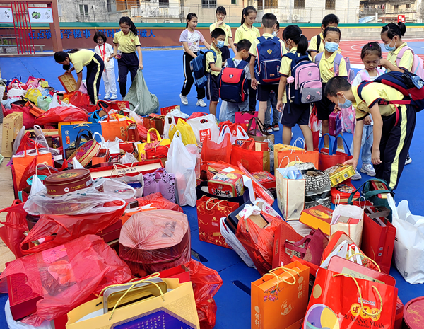 活動(dòng)過程中,同學(xué)們積極響應(yīng),熱情高漲。每天迎著朝陽,手中拿著從家里收集整理好的月餅盒、衣服、廢舊電池、電子廢品等,興高采烈地回到學(xué)校,有序地?cái)[放在指定回收點(diǎn)上。此項(xiàng)活動(dòng)還得到了家長們的大力支持,紛紛參與到回收活動(dòng)中來。回收現(xiàn)場,捐月餅盒的隊(duì)員絡(luò)繹不絕,現(xiàn)場氣氛十分熱烈。