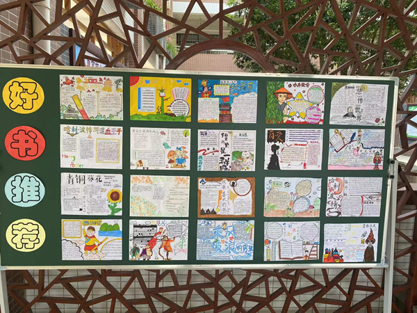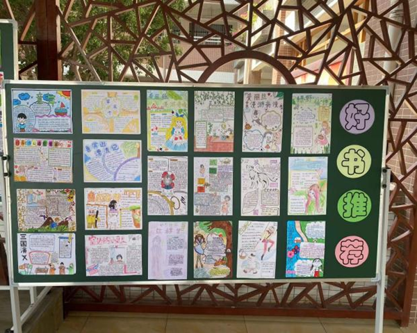 為引導(dǎo)學(xué)生多讀書,構(gòu)建有特色的書香校園文化,學(xué)校還組織開展了好書推薦活動。老師們讓學(xué)生舞起手中的畫筆制作“好書推薦畫報(bào)”,學(xué)生通過畫報(bào),生動地向同學(xué)們傳遞閱讀、寫作和創(chuàng)造的樂趣。