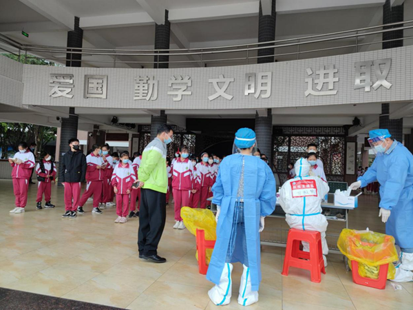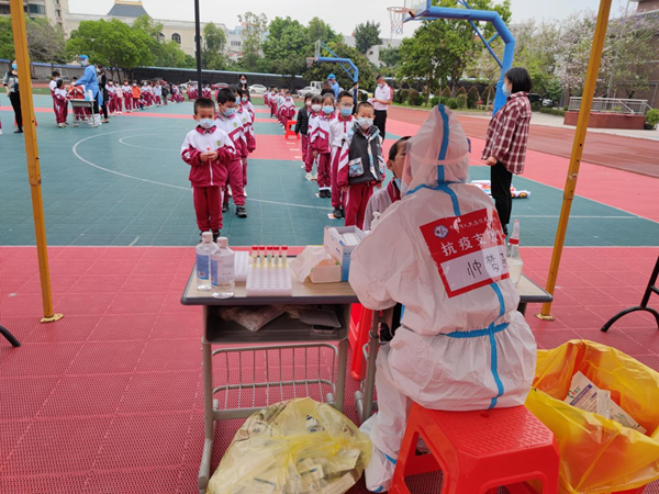 為進一步落實上級領導部門的疫情防控措施,落實疫情期間防控主體責任,保障全校師生的身體健康和生命安全,火炬區(qū)第四小學全力配合火炬區(qū)開展的全員大規(guī)模核酸檢測工作,于3月29日開展第二輪全體在校學生、教職工核酸檢測工作。此次全校全員核酸檢測工作于13:10開始,15:45結束,順利有序完成。