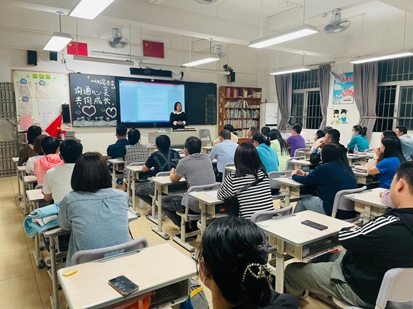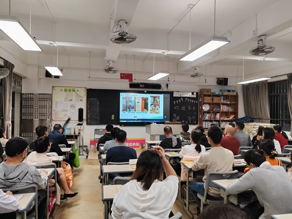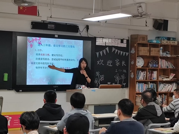 在家長會上,班主任向家長全方位地介紹了孩子在學(xué)校的學(xué)習(xí)和生活情況,并引領(lǐng)家長共同學(xué)習(xí)《廣東省中小學(xué)家庭教育親子溝通指引》文件。同時,通過學(xué)校班主任工作室制作的微課,班主任還和家長們具體分享了親子教育的溝通技巧。隨后,各個學(xué)科教師基于學(xué)科特點,結(jié)合教育實例,就孩子學(xué)科學(xué)習(xí)、學(xué)段特點、習(xí)慣培養(yǎng)及家校配合方面進行了深入、細致地交流和探討。
