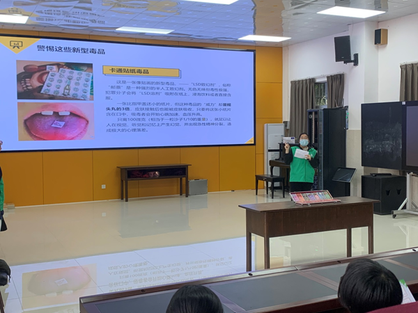 禁毒辦工作人員向同學(xué)們派發(fā)禁毒宣傳單,并介紹了“什么是新型毒品、常見的新型毒品類型、吸毒的巨大危害、如何防范毒品”。在通俗易懂的語(yǔ)言、各種真實(shí)的案例中,同學(xué)們感受到毒品的危害,他們認(rèn)真聽講、積極參與互動(dòng)交流。