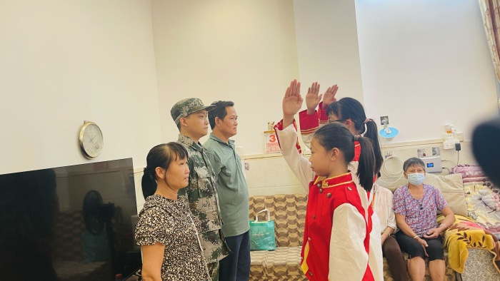 9月4日上午,火炬區(qū)第五小學(xué)少先隊鼓號隊?wèi)?yīng)社區(qū)邀請參加入伍新兵歡送活動。在少先隊輔導(dǎo)員阮結(jié)連老師的帶領(lǐng)下,參加了珊洲小區(qū)、海滂小區(qū)的新兵入伍歡送儀式。