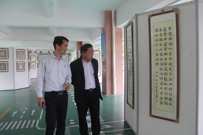 上午11點,水城區(qū)教育局領(lǐng)導(dǎo)及學(xué)校校長抵達(dá)開發(fā)區(qū)第一小學(xué)。在蔡長青校長的帶領(lǐng)下,學(xué)校全體行政熱情迎接。遠(yuǎn)道而來的領(lǐng)導(dǎo)、校長一行首先參觀了學(xué)校文安樓的師生食堂、文瀾樓的學(xué)生書畫展以及文偉樓的學(xué)校校史室,在學(xué)校大隊輔導(dǎo)員沙紅巖老師的講解下,也大致領(lǐng)略了百年一小的滄桑巨變與光輝業(yè)績。各位領(lǐng)導(dǎo)充分肯定了學(xué)校對文明禮儀教育的高度重視,深刻感受了教師對學(xué)生藝術(shù)素養(yǎng)的精心培育,也欣喜看到了學(xué)生多元發(fā)展的表現(xiàn)及成效。