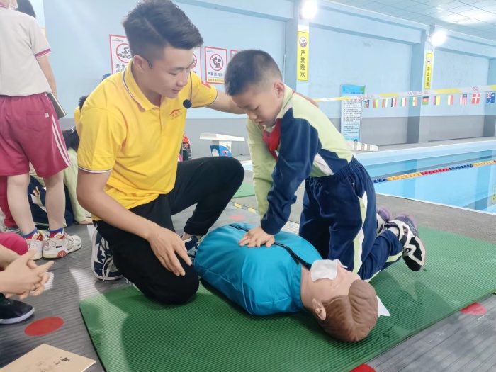 安全實(shí)操演練是本次活動的重頭戲。教授知識,判斷標(biāo)準(zhǔn)游泳池;體驗(yàn)?zāi)缢?,增?qiáng)危機(jī)意識;情景模擬,掌握自救、搭救本領(lǐng)……活動緊張有序地開展著。通過生動的情景演示,進(jìn)一步強(qiáng)化了同學(xué)們的防溺水安全意識,對提醒同學(xué)們嚴(yán)防溺水安全事故發(fā)生和確保自身生命安全起到了良好效果。
