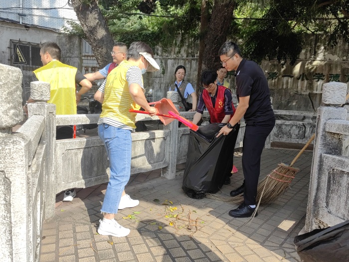 最后,在第一小學(xué)黨支部書記蔡長青同志的帶領(lǐng)下,學(xué)校黨員代表與各位退役軍人一同來到學(xué)校南面的蔡北華紀念亭進行瞻仰紀念和衛(wèi)生清潔。蔡北華為火炬開發(fā)區(qū)張家邊村人,民國24年(1935)參加革命并加入中國共產(chǎn)黨,曾任中共上海市委統(tǒng)戰(zhàn)部副部長以及上海市人民政府第八辦公室副主任等。大家在衛(wèi)生清掃活動期間,又重溫了蔡北華先生的光輝事跡,感受到革命先輩那崇高的信仰與濃濃的家園情懷。