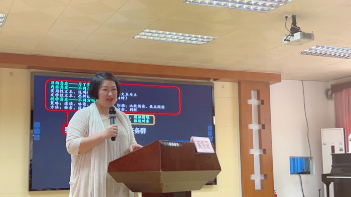 梁老師深入研究新課程標準,從專業(yè)角度出發(fā),對新課程標準進行了既科學又接地氣的詮釋,把新課程標準簡化為“四四三三二”幾個數(shù)字,讓老師們快速把握課程標準的重要內(nèi)容,深讀簡出,意蘊深厚。隨后,梁雪菊老師結(jié)合多種文體、多種課型,通過實際的教學案例向在場的老師們解析學習任務(wù)群的要求和操作要領(lǐng),引導(dǎo)老師們在日常教學中如何落實學習任務(wù)群,從而帶領(lǐng)學生進行更深層次的學習。從梁老師深入淺出的講解中,老師們進一步領(lǐng)悟了新課標的精髓,做到心中有“標準”,及時更新自己的教學理念。