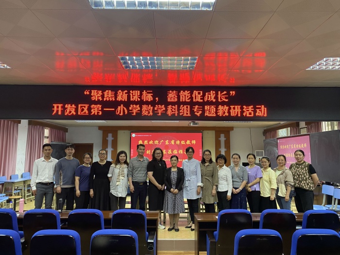 為加深數(shù)學(xué)教師對(duì)2022版數(shù)學(xué)課程標(biāo)準(zhǔn)的理解,深刻領(lǐng)會(huì)新課程標(biāo)準(zhǔn)內(nèi)涵,4月10日下午,開發(fā)區(qū)第一小學(xué)在學(xué)校電教室開展以“聚焦新課標(biāo),蓄能促成長”為主題的數(shù)學(xué)專題教研活動(dòng)。本次活動(dòng)邀請(qǐng)中山市小學(xué)數(shù)學(xué)教研員劉燕校長到場指導(dǎo),博文學(xué)校、開發(fā)區(qū)第二小學(xué)的數(shù)學(xué)教師代表參與了此次活動(dòng)。