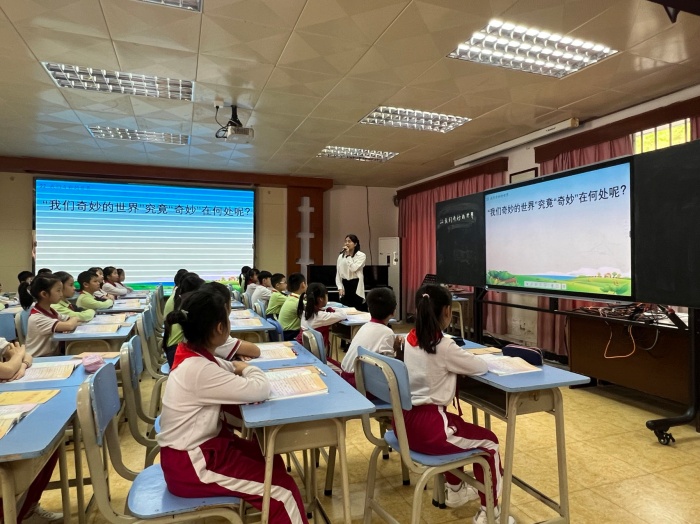 在東西部協(xié)作和定點(diǎn)幫扶工作的重要指示精神引領(lǐng)下,貴州六盤(pán)水市水城區(qū)第五小學(xué)朱玉、沈春梅、嚴(yán)紅3位老師到開(kāi)發(fā)區(qū)第一小學(xué)跟崗學(xué)習(xí)。為了更好地開(kāi)展兩校語(yǔ)文學(xué)科的教研交流,引導(dǎo)教師探討課堂教學(xué)的規(guī)律,切實(shí)提高課堂教學(xué)質(zhì)量,3月24日上午,水城區(qū)第五小學(xué)朱玉老師帶領(lǐng)著開(kāi)發(fā)區(qū)第一小學(xué)三3班的孩子們展示閱讀課例——《我們奇妙的世界》。開(kāi)發(fā)區(qū)第一小學(xué)行政及全體語(yǔ)文老師參與本次研討活動(dòng)。