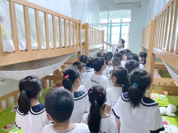 最后,老師還帶寶貝們觀看了小學(xué)莊嚴的升旗儀式,參觀了小學(xué)美麗的功能室和整潔的宿舍。看到哥哥、姐姐們學(xué)習(xí)和生活的地方那么干凈舒適,寶貝們心里充滿了期待。