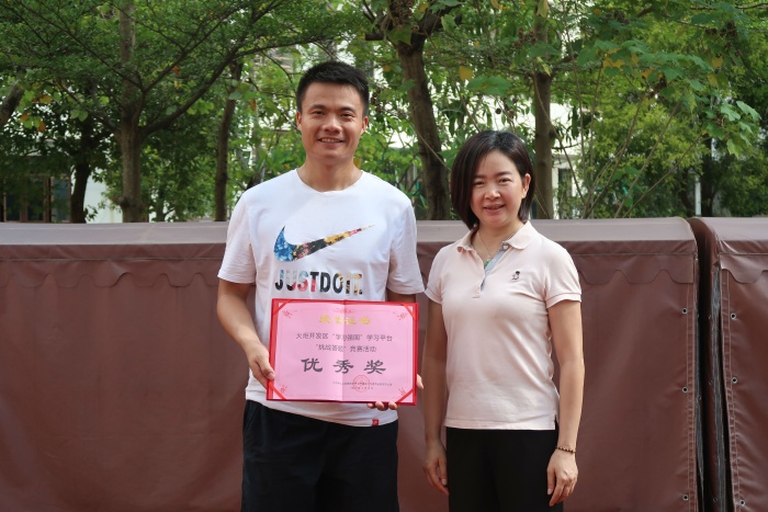 經(jīng)過一番激烈的角逐,開發(fā)區(qū)一幼盧杰權(quán)老師獲得了“優(yōu)秀獎(jiǎng)”的好成績。2021年5月17日上午,在升國旗儀式下,開發(fā)區(qū)一幼為盧杰權(quán)老師舉行了隆重的頒獎(jiǎng)儀式,蘇丹娜副園長為其頒發(fā)獲獎(jiǎng)證書。