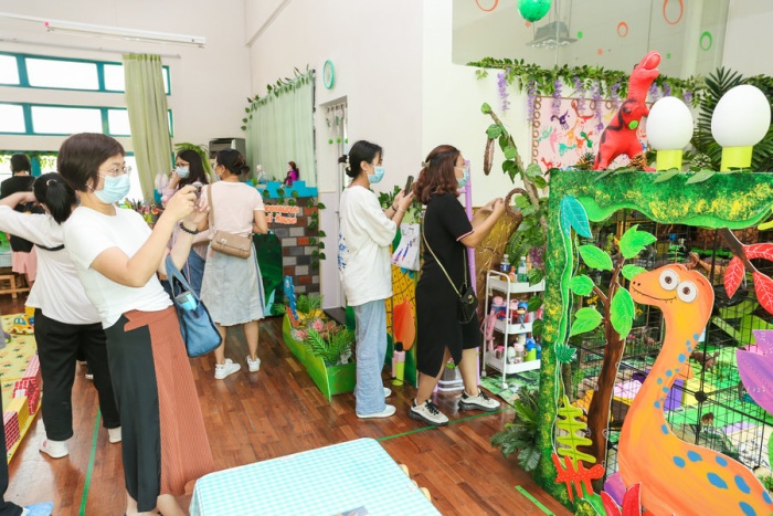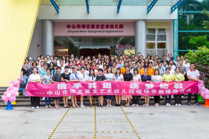 為搭建了一個(gè)互相學(xué)習(xí),互相交流,共同進(jìn)步,增進(jìn)情感的平臺(tái),2021年5月14日上午中山市博文英文藝術(shù)幼兒園進(jìn)行了“攜手共進(jìn),逐夢(mèng)幼教”的現(xiàn)場(chǎng)開放接待活動(dòng)。來自中山市、開發(fā)區(qū)各幼兒園的幼教同行一行一百五十多人到中山市博文英文藝術(shù)幼兒園參觀交流,盧艷青園長(zhǎng)率領(lǐng)全體教職員工予以熱情的接待。