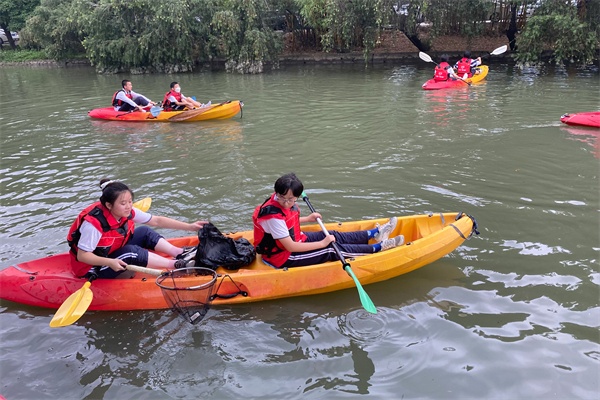 學生們穿戴好安全裝備后,有序登上皮劃艇開始巡河。他們認真觀察河面的情況,互相配合,對河面及沿岸垃圾進行了集中打撈和清理。在體驗皮劃艇的同時,有了奉獻自我、助力生態(tài)文明建設(shè)的滿滿參與感。