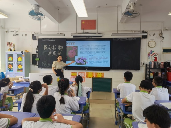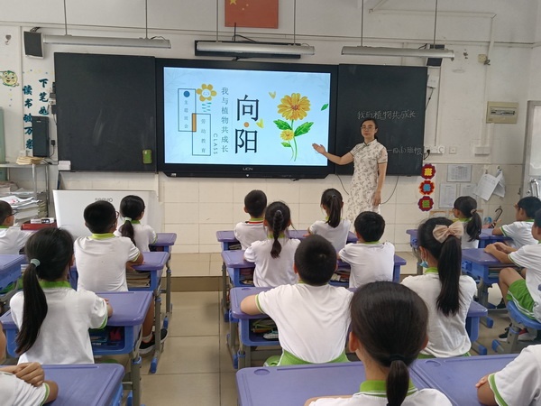班會課上,老師通過分享校園內、學生身邊的花卉,介紹花卉植物的相關知識及養(yǎng)護方法,提高了同學們對植物的興趣,增強了同學們與植物和諧相處的環(huán)保意識。為配合勞動教育的開展,學校在教學樓各樓層走廊、樓梯間增設的種植花架,為同學們提供了勞動種植機會,引導同學們?yōu)榛ɑ軡菜⑹┓?、修剪枝葉,讓同學們在勞動中收獲種植的樂趣、勞動的快樂。一盆盆綠意盎然的花卉植物體現(xiàn)出同學們對植物的喜愛,激發(fā)了同學們探究植物生長的好奇心。