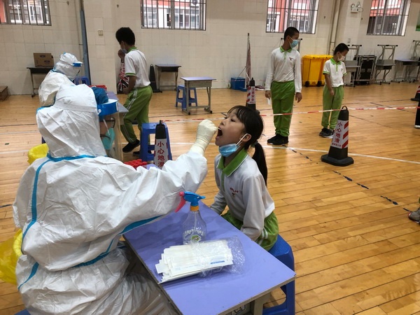下午兩點(diǎn),核酸檢測(cè)正式開(kāi)始。黨員教師志愿者們各司其職,有的穿上防護(hù)服投身到核酸檢測(cè)信息采集工作中,有的維持好現(xiàn)場(chǎng)秩序,有的指引學(xué)生有序離場(chǎng)。香暉園小學(xué)為全校學(xué)生制作了核酸碼卡片,學(xué)生只需拿著核酸碼卡片就能自主完成掃碼工作,既提高了核酸檢測(cè)的效率,又減輕了班主任的工作量。在學(xué)校各部門(mén)的配合下,當(dāng)日下午四點(diǎn)半,香暉園小學(xué)順利完成了對(duì)全體教職工和學(xué)生的核酸檢測(cè)采樣工作。