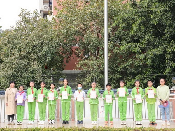 隨后,迎來了“國旗下榮譽時刻”環(huán)節(jié),大隊輔導員杜沁源宣讀了2021-2022學年第一學期獲得“優(yōu)秀少先隊干部”榮譽稱號的隊干名單。杜老師肯定了隊干們認真負責、勇于擔當?shù)墓ぷ鲬B(tài)度,并對全體隊員提出期望,希望隊員們以隊干為榜樣,共同為營造香小良好的學習、生活環(huán)境貢獻自己的力量。陳虹崗副校長為獲獎隊干們頒發(fā)獎狀并合影留念。