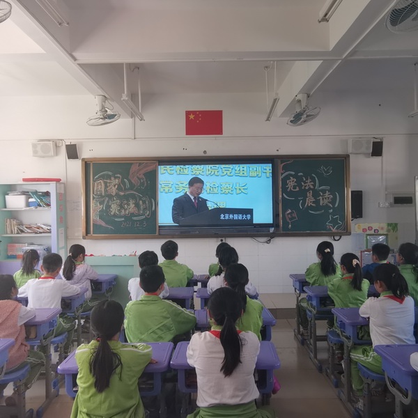 當日上午9:00,各班利用教室多媒體設(shè)備在教育部全國青少年普法網(wǎng)收看了憲法晨讀網(wǎng)絡直播。全體師生通過直播觀看了現(xiàn)場舉行的升旗儀式、憲法晨讀、北京主會場領(lǐng)唱《憲法伴我們成長》歌曲、優(yōu)秀學生現(xiàn)場展演、最高檢察院副檢察長講法治課等活動,深刻領(lǐng)會了憲法的含義。隨后,各班班主任帶領(lǐng)學生逐字逐句地朗讀《憲法晨讀》內(nèi)容。通過二十分鐘的朗讀,全校師生對憲法有了初步的認識,對憲法中的基本法律知識有了初步的了解。