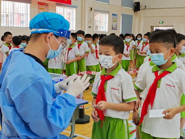 為了落實校園疫情防控相關(guān)工作要求,9月1日下午,學(xué)校組織全體學(xué)生及教職工開展了全員核酸檢測采樣工作。學(xué)??倓?wù)處提前對核酸檢測采樣場地、流程、路線規(guī)劃等工作進行了專項部署。同學(xué)們手持定制的“核酸碼”小卡片,在老師的帶領(lǐng)下完成了核酸檢測采樣。香暉園小學(xué)僅用兩個小時就完成了兩千多人的核酸檢測采樣工作,充分體現(xiàn)出香小團隊工作的高效性。香暉園小學(xué)將持續(xù)做好常態(tài)化疫情防控工作,織密扎牢校園疫情防控網(wǎng)。