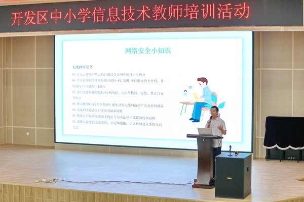 首先,開發(fā)區(qū)小學(xué)信息技術(shù)中心教研組組長、開發(fā)區(qū)香暉園小學(xué)翟偉鈺老師開展了題為《校園網(wǎng)絡(luò)安全》的微講座,翟老師在簡要闡述了網(wǎng)絡(luò)安全概念后,結(jié)合其自身多年的校園網(wǎng)絡(luò)管理工作經(jīng)驗,從中小學(xué)網(wǎng)絡(luò)安全現(xiàn)狀、校園網(wǎng)安全的防范措施及網(wǎng)絡(luò)安全小知識三方面展開分享,以具體實(shí)例具體分析的形式,為與會教師提供了切實(shí)可行的解決方案,開拓了工作思路。