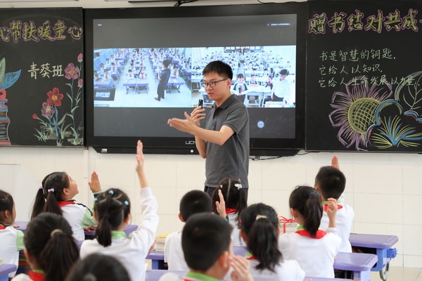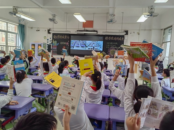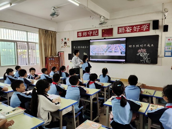 據(jù)悉,香暉園小學(xué)四(5)青葵班以融合生命教育為特色。一年級(jí)入學(xué)至今,該班積極開展書香班級(jí)文化建設(shè),已形成了良好的書香氛圍。在得知原語文老師吳書銘所支教的班級(jí)讀書資源相對(duì)匱乏的信息后,班主任陳浩亮老師向青葵班全體同學(xué)發(fā)出贈(zèng)書倡議,得到了同學(xué)們的熱烈響應(yīng)。每位“小青葵”都從自己喜愛的圖書中,篩選出適合四年級(jí)的經(jīng)典必讀圖書,并在圖書的扉頁(yè)上精心設(shè)計(jì)富有特色的贈(zèng)書祝福。