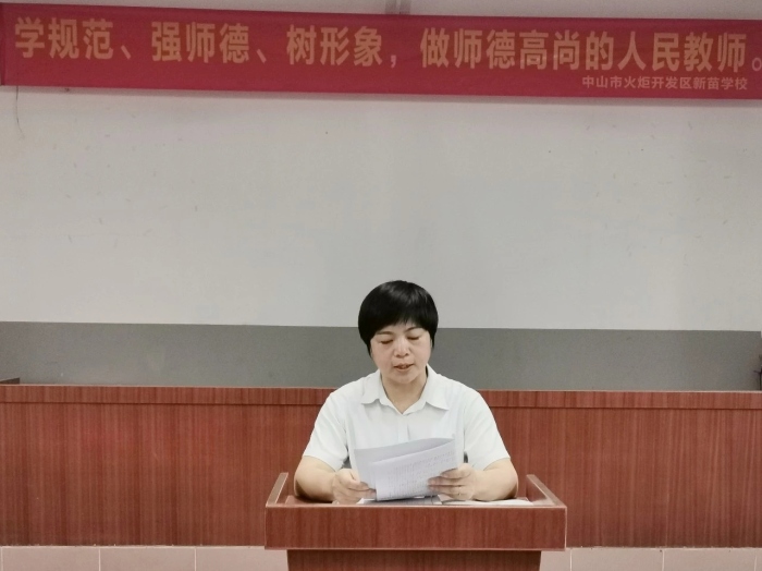 陶行知先生曾經(jīng)說過:“學高為師,德高為范?!绷己玫膸煹拢呱械膸燂L是做好教育的核心。為了不斷提高新苗學校教師的師德修養(yǎng),加強教師隊伍師德師風建設(shè),樹立嚴格自律、愛崗敬業(yè)、為人師表的良好教師形象,增強教師教書育人的光榮感、責任感和使命感,9月8日晚,新苗學校舉行了“學規(guī)范、強師德、樹形象,做師德高尚的人民教師”師德師風專題培訓會。此次培訓會由新苗學校校長鄒麗主持。