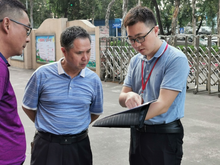 12月10日,中山市督學(xué)、區(qū)教育事務(wù)指導(dǎo)中心教研員張立超老師到新苗學(xué)校進(jìn)行校園安全和常態(tài)化疫情防控專項(xiàng)督導(dǎo)。新苗學(xué)校校長(zhǎng)朱德友、副校長(zhǎng)兼學(xué)校教育督導(dǎo)員鄒麗、副校長(zhǎng)段岳華、德育處主任黃俊等學(xué)校行政全程陪同。