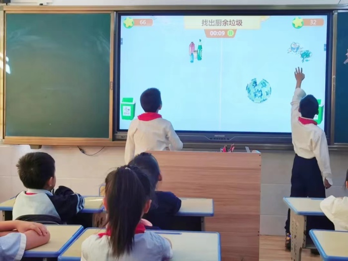 班會課上,老師首先向同學(xué)們介紹了當(dāng)前環(huán)境保護的嚴峻形勢,讓孩子們明白了垃圾分類的重要性和緊迫性。接著,老師詳細從四個方面進行講解,分別是什么是垃圾分類、垃圾分類的好處、認識垃圾桶標(biāo)志、如何做好垃圾分類。讓學(xué)生了解垃圾分類相關(guān)知識后,老師組織孩子們開展知識問答、唱兒歌、垃圾分類小游戲等活動,在同學(xué)們的積極參與下,垃圾分類班會課氣氛活躍、內(nèi)容具體、貼近生活。最后,老師勉勵孩子們改變生活習(xí)慣,減少垃圾制造,養(yǎng)成“綠色出行”“綠色購物”“綠色就餐”等文明衛(wèi)生習(xí)慣。